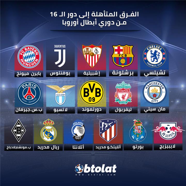 الفرق المتأهلة إلى دور الـ16 من دوري أبطال أوروبا 2021 بطولات