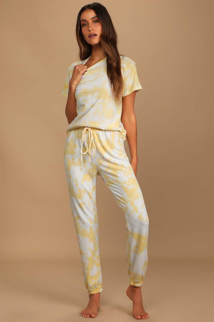 Lulus Tie Dye Joggers Yellow Joggers Cozy Sweats